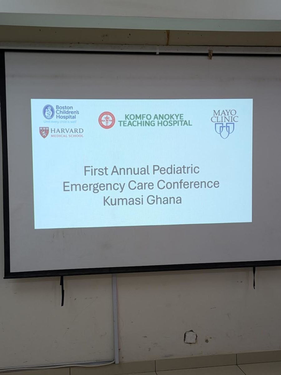 By completing our first pediatric emergency medicine conference in Ghana we were able to train pediatric and emergency medicine resident to resuscitate critically ill children and kick off the new fellowship program for the first fellow in Ghana in pediatric emergency medicine and critical care. Participants were trained in critical procedures that will be life saving for children in Ghana. After the conference, participants felt they would not only be able to improve the care they give to critically ill children but also reported improved ability to counsel families and involve families in care.