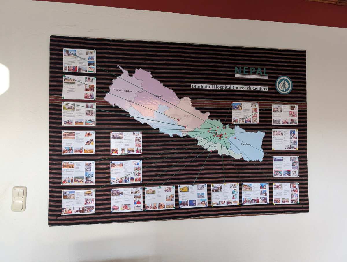 One of the special aspects of Dhulikhel Hospital is that it strives to reach its rural community through "outreach" centers, which you can see on the map I attached. These small buildings in rural and hard to reach areas serve as clinics, pharmacies, and 24/7 emergency departments for Nepalis who otherwise would not have any access to care. A picture of inside of the emergency departments without patients is attached.