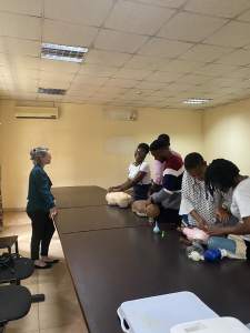 I also led a session on pediatric resuscitation and PALs using low fidelity simulation tools with interns rotating through the pediatric wards. Additionally, we worked on a “train the trainer” session to help the senior residents and clinical officers become more comfortable teaching resuscitation so they can continue to teach incoming interns on the wards.