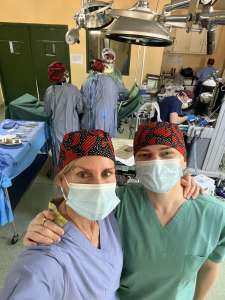 As a gynecologist I work with and operate on women. Many of the women we met on this mission trip came from far distances seeking surgical care for pelvic pain and heavy vaginal bleeding. This abnormal bleeding was often due to uterine fibroids, ovarian cysts and cervical cancer. Many of these women were young and unable to conceive due to the large numerous fibroids. My chief resident and I performed myomectomies, removing the fibroids and keeping the uterus to allow them the chance of conceiving. The importance of having a family in this culture cannot be underestimated. The custom here is to show the family the specimens that were removed and discuss the outcomes of the surgery. Often the first question asked was “when can she conceive?” Older womem who had completed child bearing with symptomatic uterine fibroids underwent hysterectomies. The surgical procedures we performed had a large impact on the women but also indirectly on their husbands, families and communities. Helping the women with their pain and bleeding and stopping the continued growth of these tumors allowed them to go back to the full function their daily activities of living and manage their families.
