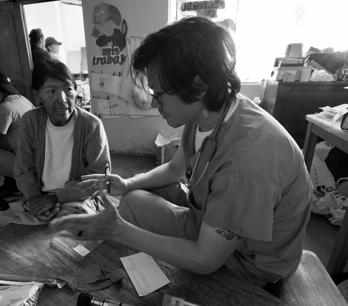 Education is a huge component while volunteering abroad. Here a resident physician educations a patient on diet and lifestyle changes to prevention hypertension and diabetes.