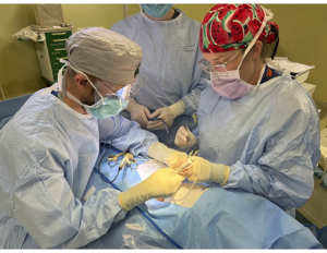 10 am- Meanwhile at the main hospital, Dr Natalia Ferrando’s team was able to provide anesthesia for patient with thyroid tumors. Dr. Cathy Baker also had her own room providing obstetric care- hysterectomy’s as well as c sections.