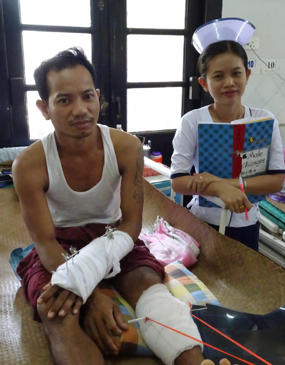 Most patients at Yangon General are victims of road traffic accidents and industrial injuries. Many patients have infections. Nearby Yangon Orthopedic Hospital provides reconstruction, oncology, and elective treatment. The Pediatric Hospital addresses the non-trauma needs of children. All three of these are public, civilian hospitals.