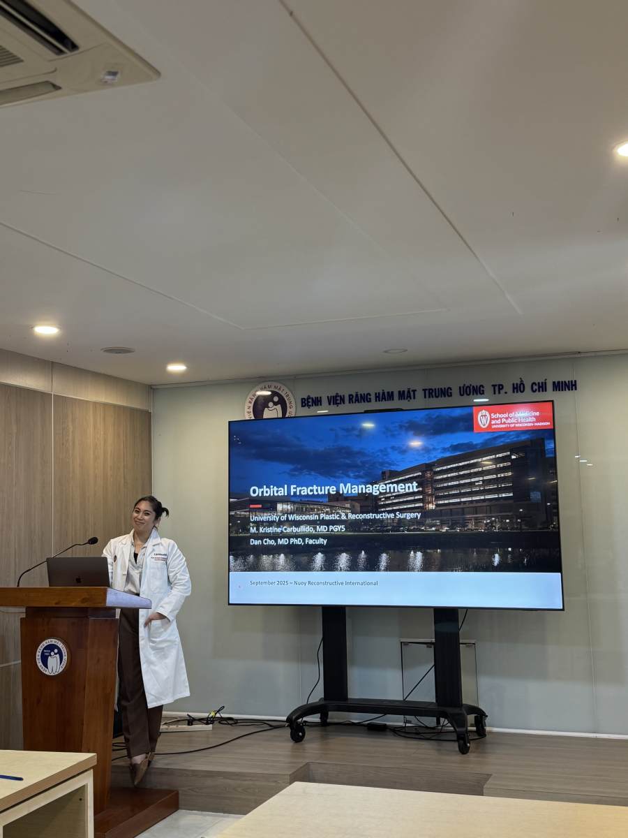 I had the privilege to help support talented Vietnamese surgeons and serve the Vietnamese people. As part of a robust global health initiative, University of Wisconsin Plastic Surgery in partnership with Nuoy Reconstructive International, created opportunities for learners like me to experience sustainable global health with bidirectional learning. I had the opportunity to help educate Vietnamese healthcare professionals and trainees on specialized procedures in craniofacial surgery, craniosynostosis, and orbital fractures. In return, I learned so much about different styles of patient care, surgical technique, and cost efficacy. In addition to common Vietnamese words used in surgery.