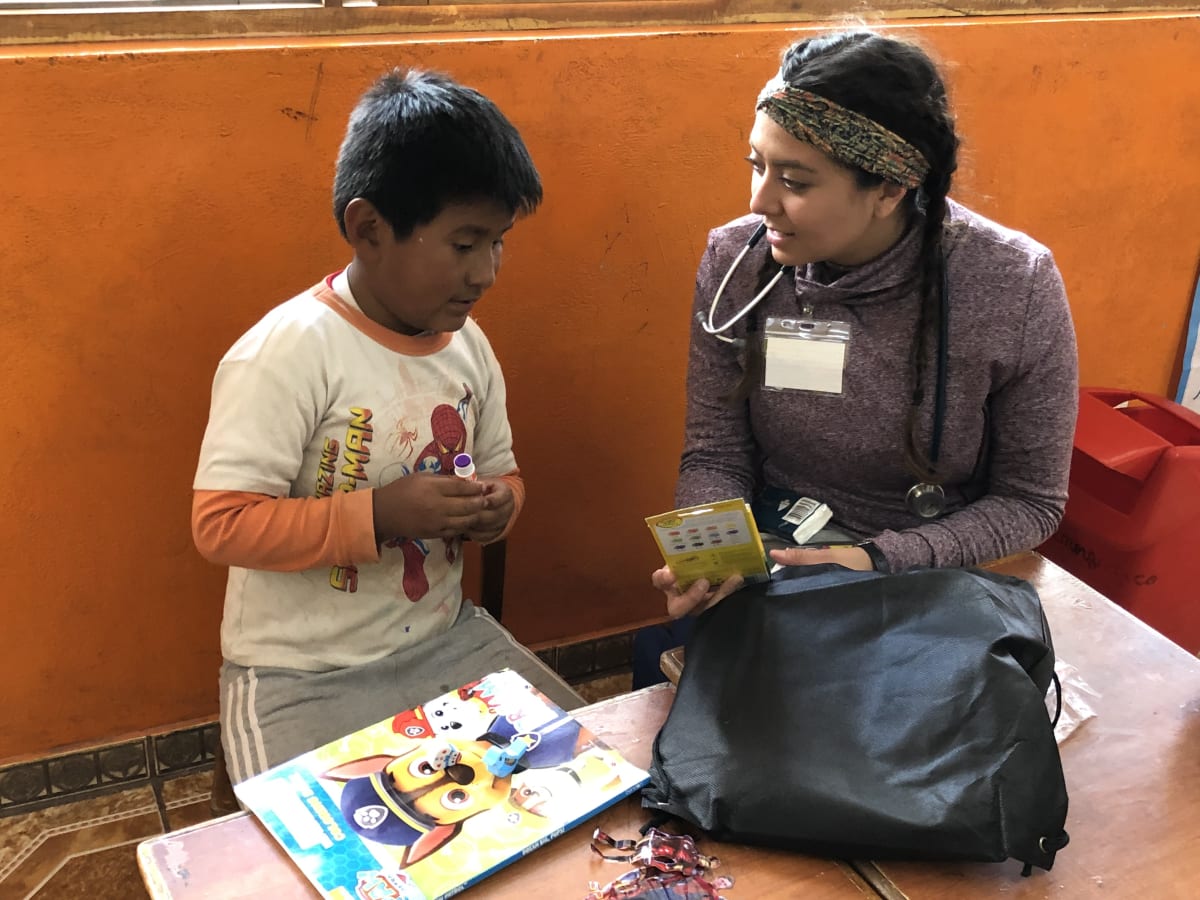Our group saw about 700 Quechuan patients, and 300 pediatric patients. We delivered high quality evidenced based care to them, dispensing the same thorough care including medicines, counseling, wound dressing and Physical Therapy that we would in the US. I believe we delievered culturally sensitive care as well. In particular, we saw several pediatric patients that we were able to also obtain virtual specialty advice including a rare case of congenital conjunctival epibulbar dermoid by our US based pediatric ophthalmologist and congenital knuckle pads by our dermatologist. We dispensed many doses of antiparasitics, and had about 7 cases of pediatric moderate-severe bacterial infections like pneumonia that required antibiotics. We delivered 100 home care packages/first aid kits to families, and 60 backpacks with school supplies to the neediest children that were donated by a San Diego based Girl Scout Troop. Thank you Doximity for making this trip possible. I can't express enough what an impact this service/medical trip has made on my personally. I has reminded me the beauty of medicine, and has given me renewed sense of purpose in my work.