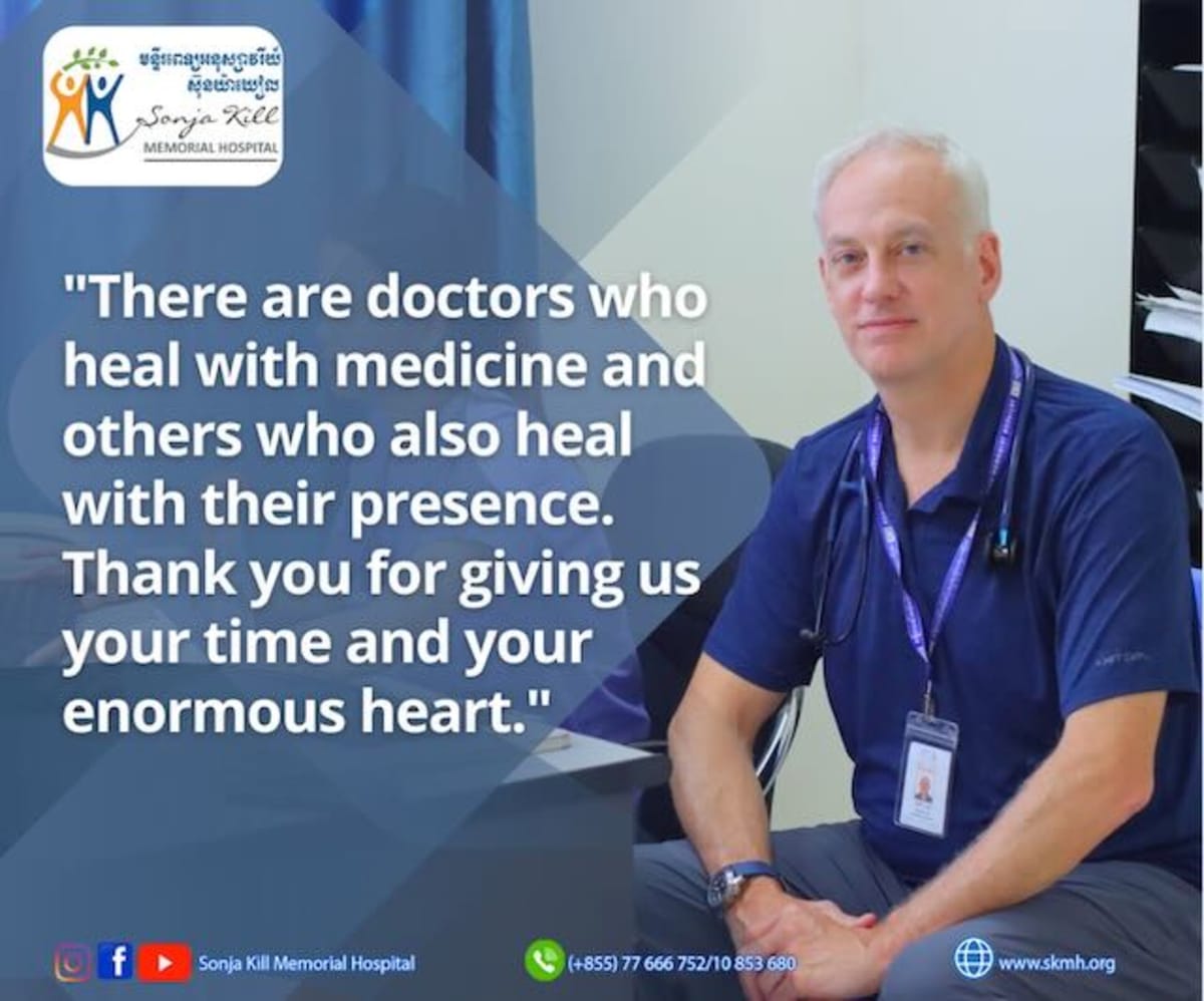I was privileged to be able to spend 3 weeks working aside a talented group of internal medicine doctors at Sonja Kill Memorial Hospital in southern Cambodia. I provided over a dozen didactic lectures, participated in morning report, and attended on ward rounds and in the Emergency Room. The doctors (who were at various stages of training and experience) reported that they benefitted from in terms of deepening their clinical knowledge and strengthening their clinical reasoning skills. The patients we helped care for were always gracious and appreciative. And as is often the case, I was perhaps the person most deeply impacted by the trip - it sharpened my clinical skills, strengthened my knowledge of neglected tropical diseases, and most importantly, reminded me that those of us in healthcare are part of one global community. It is an endeavor that at has humanity and compassion at its core, and we can all benefit from breaking down barriers and strengthening our connections, both locally and globally. I am deeply appreciative to the Doximity Foundation for helping support my trip, and honored that Sonja Kill Memorial Hospital featured me on their Facebook page!