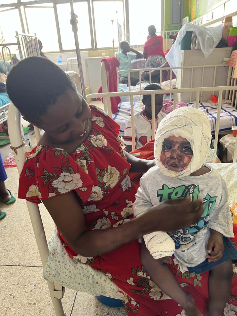The burden of burns in Uganda is staggering. The very simple homes in the villages and suburbs often have an open fire where food is cooked, and over half of the burns are a result of upsetting a container of boiling liquid, or of falling into a cooking pot, or into the fire itself. Children from ages two to five are at the greatest risk. 80% of burns occur in children less than 10 years.