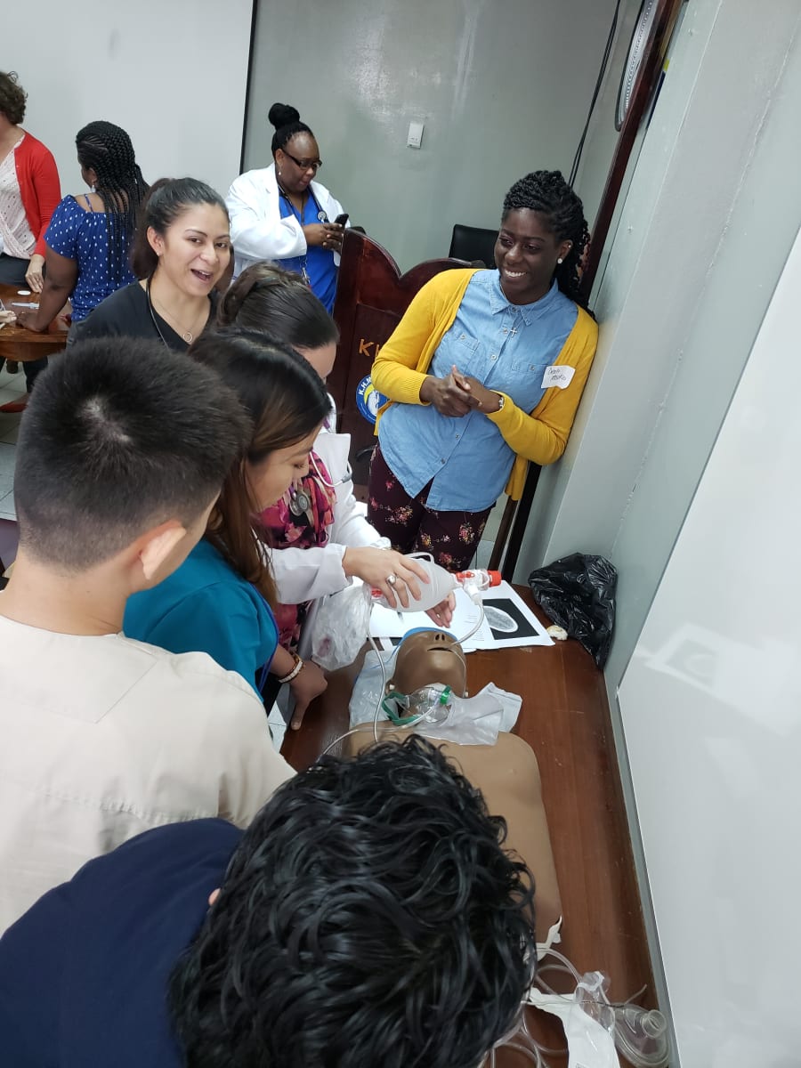 We provided the last session of a Pediatric Emergency Medicine curriculum to Belizean healthcare providers. This session included training in the approach to pediatric trauma, head and neck injury, and review of primary and secondary survey. Pictured are our interactive didactic sessions with simulated pediatric trauma cases. The providers were a very bright, very adept group of motivated individuals that will disseminate the information covered in these sessions to their local health clinics or regional hospitals.