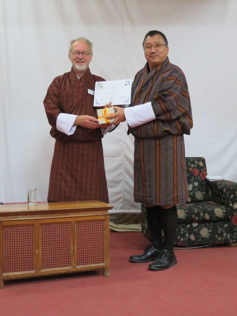 My wife, Margaret, and I worked for three months at the Jigme Dorji Wangchuk National Referral Hospital in Bhutan. Margaret introduced the role of a Social Worker to Palliative Care, Pediatric and Physiotherapy departments. I worked in the Department of Psychiatry, supervising and instructing Residents and Interns in the fledgling Psychiatry Residency and lecturing students in the undergraduate counseling program at the School of Nursing and Public Health. There are only two practicing psychiatrists in Bhutan and my services were much appreciated. Additionally, I presented at the Bhutan 5th International Medical Conference, the theme being Mental Health.