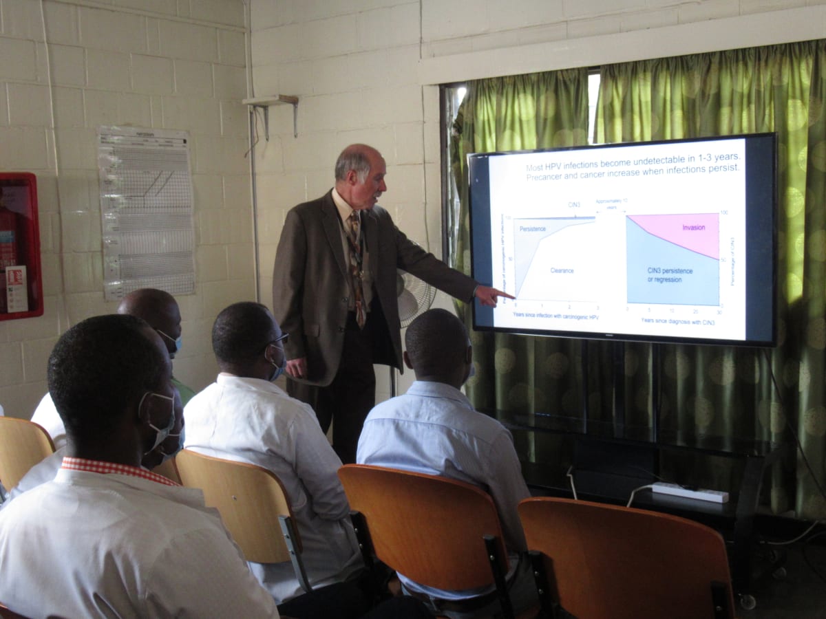The incidence of cervical cancer is higher in Eastern Africa then in other regions of the world. In Rwanda in 2020, cervical cancer comprised 23.9% of cancers in women, barely second to breast cancer which made up 24% of cancers. More women die from cancer of the cervix than breast cancer or cancer at any other site. The Director General of the World Health Organization has called for elimination of cervical cancer using a three part strategy of immunizing 90% of teenagers, screening 70% of women twice- by age 35 and again by age 45 using a high performance screening test such as HPV DNA- and treating 90% of women with cancer or precancer. The Rwandan Ministry of Health has been very successful in the first of these objectives, vaccinating over 90% of girls aged 11-15 annually since 2012. Lack of Resources in this low income country has severely limited Rwanda’s ability to meet the other two objectives.