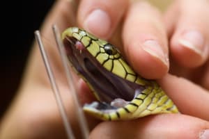 Our organization also has herpetologists focused on better understanding the snakes that live in the Kindia region. Every evening, a group made up of Guinean herpetologists, ASF herpetologists and the medical teams would hike into the surrounding savannah and forests to look for amphibians and reptiles. Venomous snakes were captured and the herpetology team would use ketamine to safely sedate the snakes and extract venom using capillary tubing. Components of venom within a species can vary across geographical range, and the goal is to better understand the venoms of the snakes causing envenomations across Guinea.