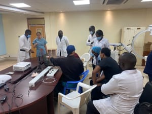 We had a wonderfully productive trip to the University of Nairobi where we supported the Interventional Radiology (IR) fellowship program and developed goals to support the Department of Radiology. Our team provided educational conferences, case review, high-fidelity simulation training, and intraprocedural case support. The team focused on teaching technical skills, understanding radiation safety, and sterile technique. We learned a great deal about the current IR fellows and advanced our relationships with the department. Our multidisciplinary team of IR physicians from Thomas Jefferson University (TJU) and UAMS, IR integrated resident from TJU, IR nurse from Duke University, and IR technologist from Duke Regional truly enjoyed the time getting to know the team at University of Nairobi/Kenyatta National Hospital and building new relationships.