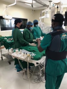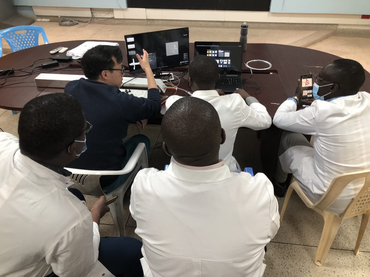 In our two weeks in Nairobi, Kenya we worked with the Interventional Radiology fellows at Kenyatta National Hospital, The Nairobi Hospital and Nairobi West Hospital. The three fellows (Dr. Mwangi, Dr. Murayi and Dr. Kipchirchir) were very excited and eager to learn all things Interventional Radiology. We gave morning conference to the fellows and Radiology residents at the University of Nairobi and covered topics such as Vascular Access and Closure to Embolic Agents Used in Interventional Radiology. We then went to the procedure suites and worked 1-on-1 with the fellows and attending physicians, offering tips and tricks and advice during cases. It was inspiring and humbling to see the physicians take care of and treat the patient population with limited resources, utilizing ingenuity to provide important patient care. Additionally, at the beginning of the week we set up a vascular simulator (Mentice) and throughout the week in the afternoons we set up sessions with the fellows and Radiology residents, going through simulated vascular cases such as transarterial chemoembolization and uterine fibroid embolization.