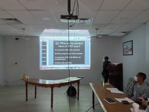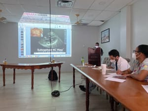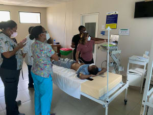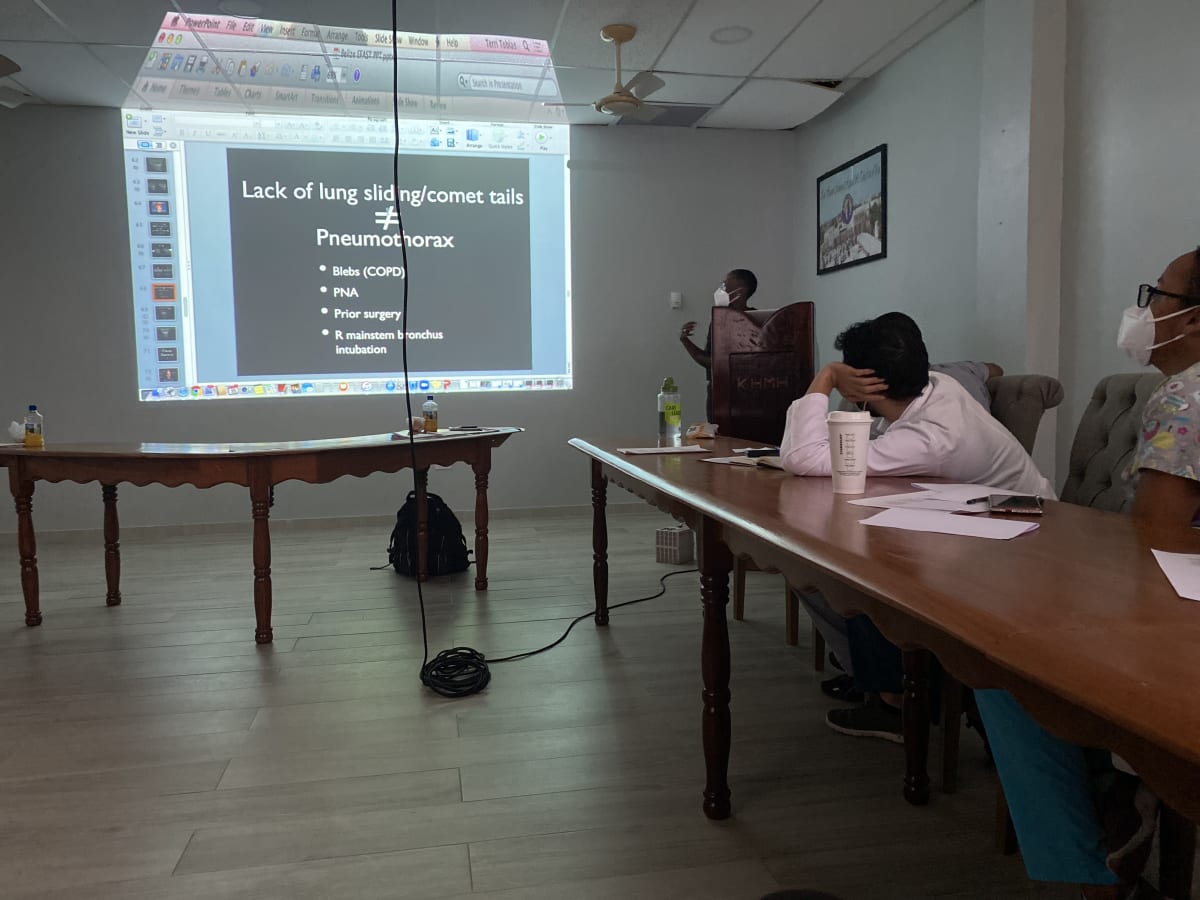 Karl Heusner Memorial Hospital (KHMH) is the only tertiary hospital in Belize. They have 1-2 of every specialist and also have a NICU, PICU, and ICU. Dr. Yenisey Cruz is only EM trained physician in Belize and we had the honor of working with her. There is one CT scan (which hasn’t worked since beginning of Covid pandemic). Private hospitals may have a CT scan but very expensive and also works intermittently. Discussing the ultrasound experience there is a range of none to some trained ultrasound before. My co fellow and I had the opportunity to lecture module 1 for an ongoing program and have some hands on scanning. It was great to see the difference between the pre and post test and how much they learned. Was a wonderful experience and can’t wait to go back!