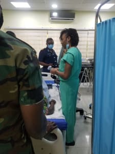 Continuing with our established contacts with the 2 facilities, we trained resident physicians across multiple specialties, including emergency medicine, surgery, OB/gyn especially OB/gyn nurses, as well as radiology residents. In Ghana, the radiologists directly acquire and interpret their ultrasound images, and often times, this is the only radiological image available prior to decision to operate, even in these two tertiary care facilities that have more resources than most in the country. Our training included days of immersion didactics and hands-on sessions, covering a range of topics including US physics and knobology, basic echocardiography, eFAST including determination of pneumoperitoneum, biliary pathologies, thyroid and scrotal ultrasound, OB/gyn including fetal dating, and importantly, US-guided procedures. At the Military hospital, we were often called upon for real time diagnostic scanning in the emergency department.