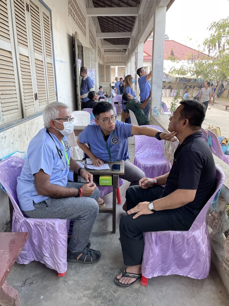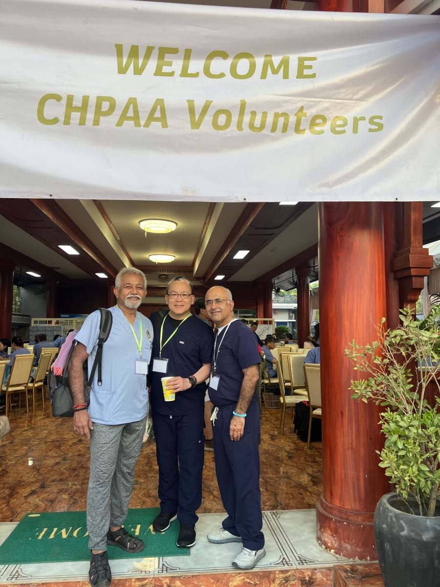 The Cambodian Health Professional Association of America (CHPAA) once a year for the past 10 years (except 2021 and 2022) has been conducting a Medical, Dental and Surgical mission in Cambodia. The team comprises of doctors, nurses, premed students and general volunteers in total around 120. This will be my 5th mission with this group. As a team of primary care physicians we examine and treat about 500 to 600 patients a day for 6 days. We screen and refer patients to our Surgical and Dental colleagues. We pack and carry around 80, 40 lb boxes of medicine and surgical supplies.
