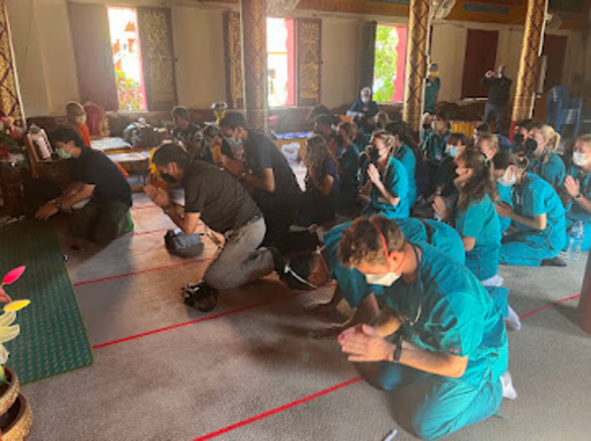 Prior to our first clinic day, we received basic cultural education from our local team, and we had the honor of touring the Mae Wang Hospital. We were able to learn more about the community we were serving, including belief systems, cultural norms, health care system structure, and most common health conditions treated. We also had the opportunity to serve the monks of each village we served. Prior to each clinic day, the monk would welcome us into the village temple, where we would gift an offering on behalf of the group as well as receive a blessing from the monk.