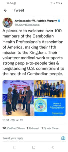 From January 30 to February 4, 2023, Our mission treated 5,637 patiens, with a larger number of encounters as one patient has received multiple points of care, with FREE medications. Our mission enjoyed the support of the US Ambassador to Cambodia and the great partnership, support, and cooperation of all levels of the Cambodian government from the Ministry of Health, Provincial Health Department and Provincial authorities.